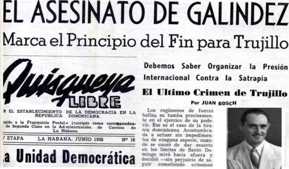 Todos los indicios ya apuntaban entonces a que Jesús de Galíndez había desaparecido por obra y desgracia de Rafael Leónidas Trujillo, déspota presidente de la República Dominicana, primer país en el que recaló el vasco en el exilio de postguerra. La razón podría confirmarse en investigaciones posteriores: el profesor Galíndez pretendía optar al doctorado en Filosofía y Ciencia Política con una tesis titulada “Trujillo´s Dominican Republic”, radiografía del sistema antillano como paradigma de las dictaduras latinoamericanas.