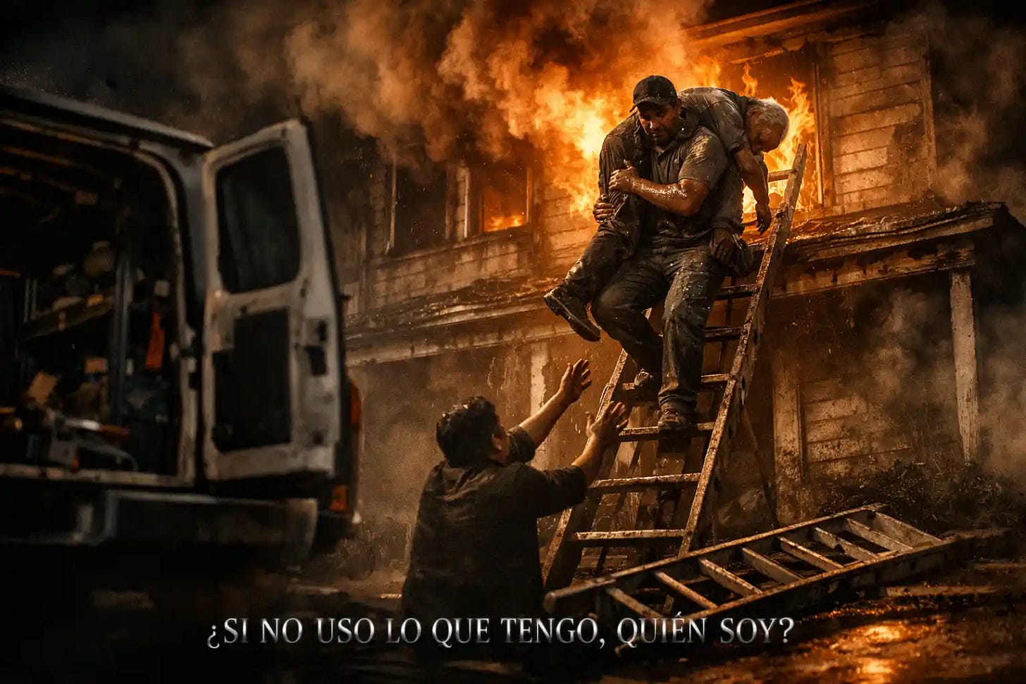 Se llama Edwin, hondureño, iba en una furgoneta, conducía un compañero de trabajo, llevaban una escalera detrás, pasaban delante de una casa en llamas, una ventana en humareda, gente pidiendo auxilio…-¡Para! – le dijo Edwin al chófer. -¡Saquemos la escalera! Pararon, cogieron la escala y la llevaron bajo la ventana soplando humo. Edwin, sin pensarlo dos veces, subió por ella y entró. Un hombre de 78 años luchaba entre el humo. Lo cargó al hombro, lo dejó al pie de la ventana y volvió a por su mujer que daba puñetazos a la pared en otra habitación. El fuego y el humo se volvieron tan intensos que no pudo avanzar. Retrocedió, cogió al hombre, “al señor”, y lo bajó por la escalera. Lo salvó. El impulso de acudir en ayuda sofocó el planteamiento de cualquier duda sobre los riesgos a correr. Los impulsos no nacen de la nada, en este caso, nacen de un fondo o sustrato de solidaridad social que alimenta el corazón y la conciencia que, en el momento en que se necesita su contribución para algo que merece la pena, brota con pasión sin que intervenga la cabeza, ni el miedo a fracasar, ni los peligros posibles, solo el corazón y la conciencia. El hombre que tiene ese yo fuerte, confiado en sí mismo, siempre está activo, no dejándose llevar, y dispuesto a actuar. No da nada con el fin de recibir. Dar es ya para él una satisfacción. En este caso, queda la espina de no haber podido salvar a la esposa de 73 años, en silla de ruedas. Pero reflexionemos, ¡Cuántas veces debimos decir algo, hacer algo, decidir algo y no lo hicimos por miedo a las consecuencias o por temor al ridículo! Ahora bien, si soy lo que tengo (la escalera) y lo que tengo no lo uso, entonces ¿Quién soy? Si tengo boca, tengo cabeza, tengo ideas, tengo criterio y no los uso para intervenir en una situación complicada ¿Qué soy?